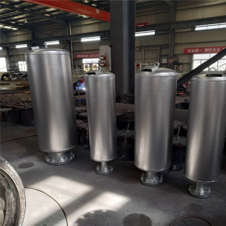 鍋爐排汽消聲器是建立在微穿孔板消聲原理上制造。電廠鍋爐蒸汽排放一般流速大,而流速大對小孔消聲影響大。所以我們需先控流,經(jīng)過一次控流后的蒸汽再進(jìn)入擴(kuò)張室,再進(jìn)一步降壓消聲。蒸汽經(jīng)大容積降壓后,從而形成低壓蒸汽噴出。在此過程中,氣流是經(jīng)小孔徑噴出。噴出后其各倍頻帶的聲功率已降低,而聲壓級的頻率被推高到20000Hz以上范圍,其噪聲大為削弱。但部分頻率的二次噪音還需要進(jìn)一步消聲。我們在擴(kuò)張室外加裝阻性吸聲棉結(jié)構(gòu),它系根據(jù)降壓體所發(fā)出的剩余噪聲的頻譜特性所設(shè)計(jì),用以有效地吸收剩余噪聲。當(dāng)用戶按要求安裝后,總消聲量要達(dá)30-60分貝,使之達(dá)到要求。